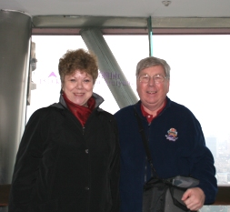 The next day, we visited the Oriental Pearl TV Tower -- looking out from the viewing station